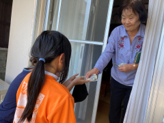 小学生が稲作体験で栽培したもち米「かびら米」を地域の