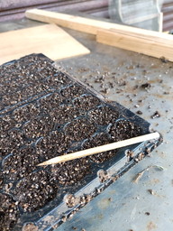 ↑割り箸を鉛筆削りで削り、土を被せる道具をつくりました。