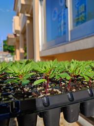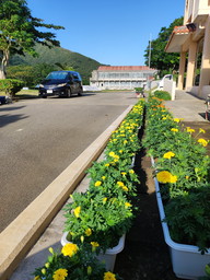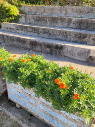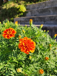 20211028 Starting to bloom マリーゴールド(種蒔きから53日)と苗(種蒔きから15日)