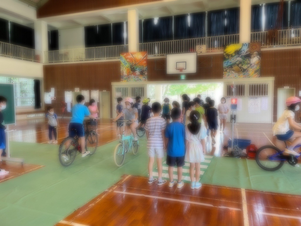 3~6年生は、自転車の点検の仕方や安全に乗るためのルールを学びました。