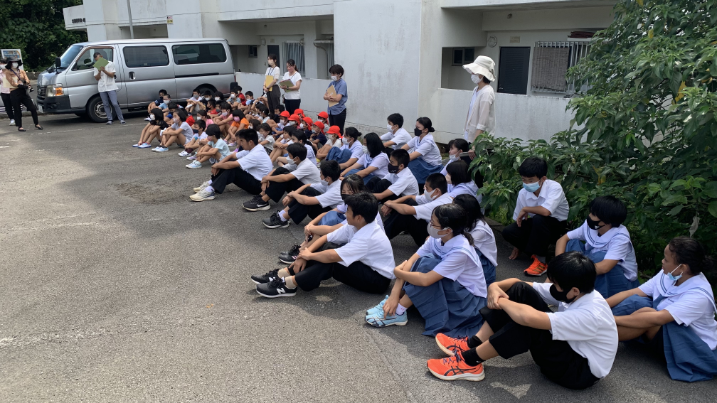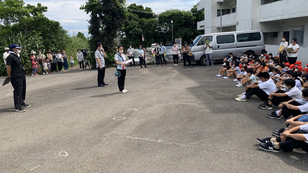 そこで全体集会をして,保護者引き渡しの練習,訓練の振り返りなどをしました。