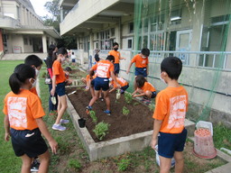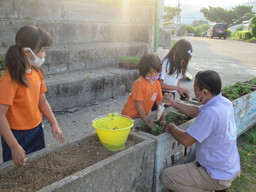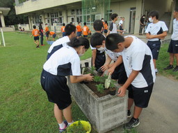 20211001人権の花:種撒から26日,ポット11日目,定植(コンクリート植栽)1日目