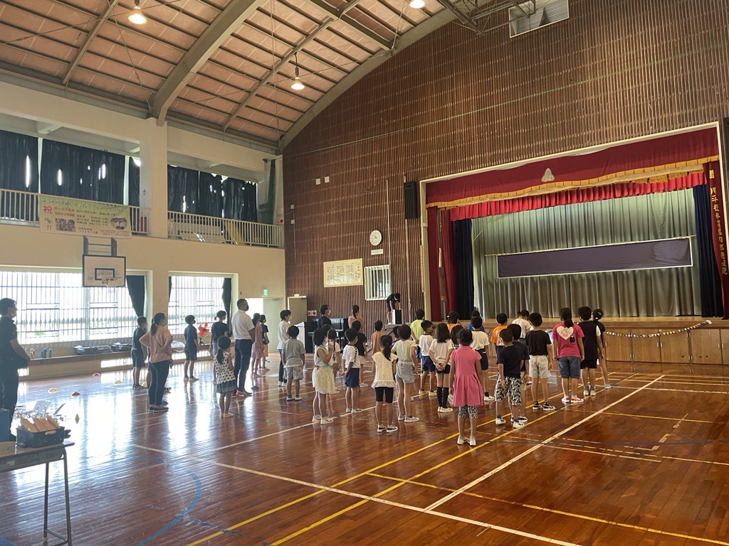 まず、「ヤッホッホ!夏休み」を全児童で歌いました♪