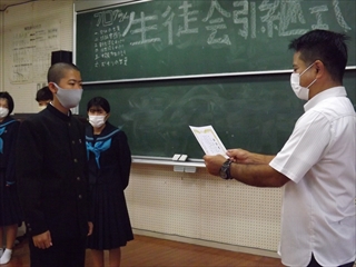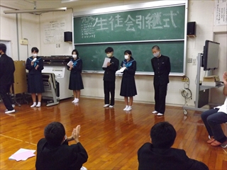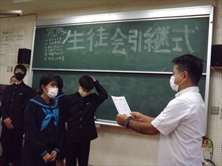 先日の生徒会選挙を受けて、本日新生徒会の皆さんにバトンが渡されました。旧生徒会の皆さんお疲れ様でした。(入試まであと91日)