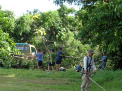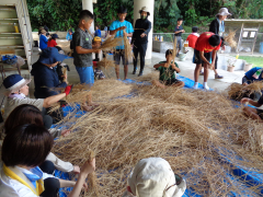 PTA整美作業7月16日(日)の保護者、職員、児童・生徒で、校内・学校林・稲わらの整美作業