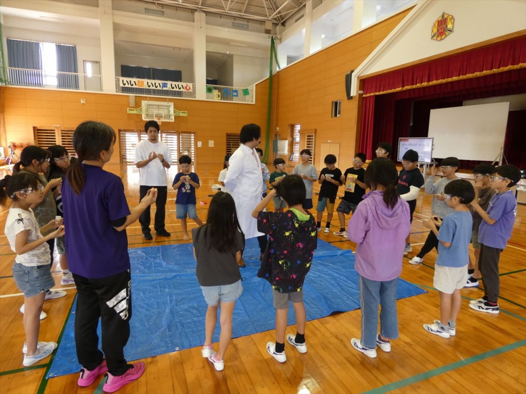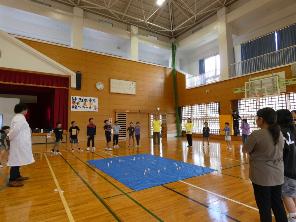 「サイエンスキャラバン」として博士が来校し、楽しい科学学習を行いました。今回は、博士と一緒に“にんじんロケット”づくりに挑戦しました。