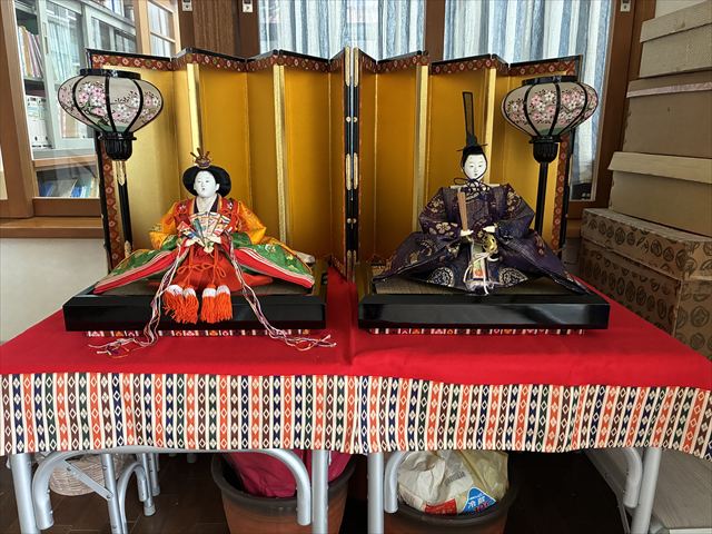 職員室奥の押し入れに大切に保管されていたひな人形を取り出し、校長室前に飾りました。久しぶりに日の光を浴びたひな人形は、華やかで優しい雰囲気を校内に届けてくれています。