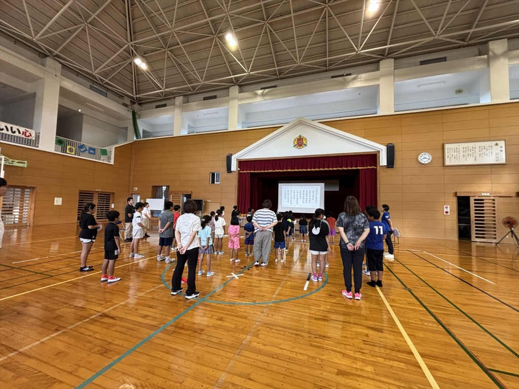 今年度最初の水泳学習を行いました。前日まで降った雨で水温はやや低めでしたが、空は快晴で気持ちよく学習することができました。今年度は4回(8時間)の学習を予定しています。1・2年生は水に慣れること、3~6年生は泳力を身につけることを目標に取り組みます。