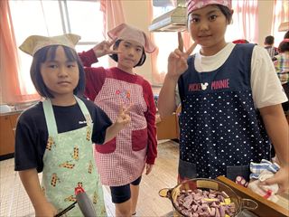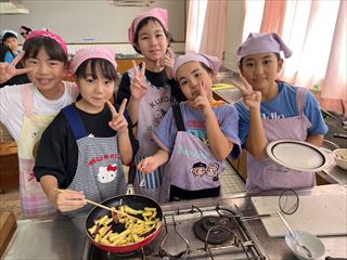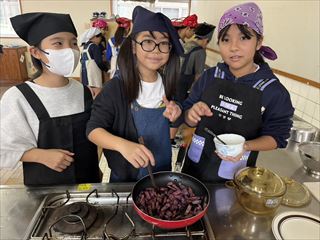 5年生が育てたお芋を料理して、パーリーをしていました。