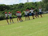 本日、運動会を無事に開催することができました。雨が降る時間帯もありましたが、晴れ間も見られ、子どもたちはエイサーや綱引きなどの競技に全力で取り組み、元気いっぱいの姿を見せてくれました。特にエイサーでは、練習の成果が存分に発揮され、観客の皆様から大きな拍手をいただきました。綱引きでは、クラスごとの団結力が試され、白熱した戦いが繰り広げられました。