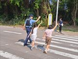 八重山警察署 伊原間駐在所と連携をし、交通安全教室を開きました。交通安全について学ぶことができました。