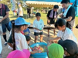 6年生の学年PTA活動の一環として、まるべ海岸で魚垣体験が行われました。魚垣は干潮時に石積みや網で魚を追い込む伝統的な漁法で、6年PTAの恒例の行事となっています。子ども達が列を作り追い込み、魚やエビ、カニをとることができました。普段できない体験に子ども達も笑顔一杯でした!