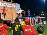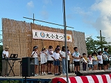 この日は大浜地区の豊年祭。1・2年生はヨイシンで、3年生以上は鼓笛隊で参加しました。また、6年生の有志による旗頭隊が旗頭を奉納しました。この日に向けて夏休み前から練習してきた子ども達ですが、この日は練習では見せなかった誇らしげな表情を浮かべていました。観客からの声援、拍手が何よりの力になったことと思います。