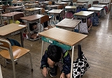 石垣市の市民防災の日に合わせて、地震・津波を想定した避難及び引き渡し訓練を実施しました。訓練は今年度2度目ということもあり、子ども達は放送を聞きながら落ち着いて行動し、5月に行ったときよりも1分近く早く避難を終えることができました。