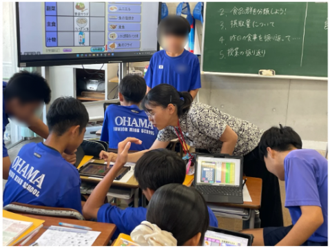 「食生活」を見直すというテーマで前日の食事を振り返りながら栄養バランスなどを考える授業を行いました。計算アプリを使いながら摂取量を考え、それぞれの食事のバランスなどを見つめ直す機会になりました。《教科書アプリの活用》