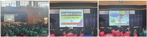 特支では複式の授業が多いため、教科学習のポータルサイトの活用を進めています。自分で学習できる動画や問題などを見ることができたり、自分がおこなった学習の様子を載せて教科の先生方にも周知できるような仕組み作りに取り組んでいる様子です。《情報共有》