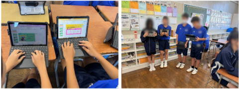 canva でランダムに作成したスライドのテンプレートをグループごとに選んで、共同編集を行い、発表の練習をしています。豊富なデザインから自分で好きなものを選択でき、見やすく魅力的なスライドを作成することができました。今後の発表に向けて各グループ、発表練習を繰り返しております。《共同編集、プレゼンテーション》