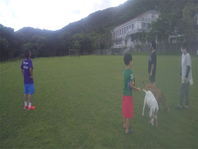 先生たちは大本小の運動場で