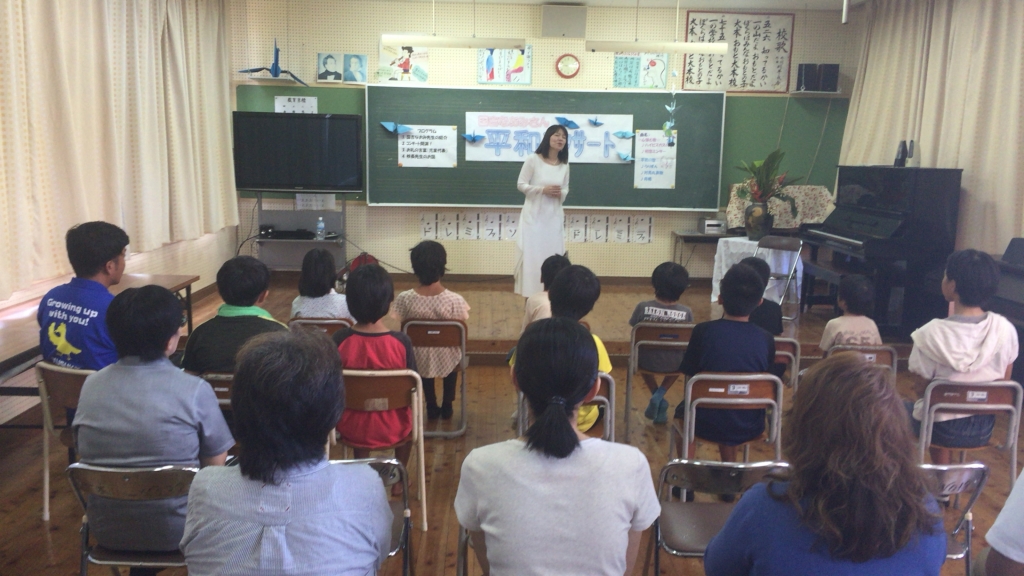 6月21日(水)の一時間目は国吉なおみさんを招いての平和集会三時間目は「マラリアを伝える会」の方々を招いての平和集会を行いました。平和コンサートでは6曲の演奏を披露して頂き、平和集会では紙芝居でみつふおばぁの実話に基づいた話を聞かせて頂きました。子ども達も改めて平和について考えたり、歌で自分の気持ちを伝える大切さに気づくことができたと思います。