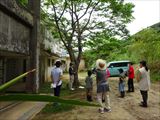 理科の授業の一環で、4月22日に校内の樹木めぐりをしました。本校の評議員でもあり警備員でもある、嶺井善さんがガイド役を引き受けてくださいました。校内には40種近くの樹木があり、一つ一つ名前や特徴について丁寧に教えてもらいました。これを機に