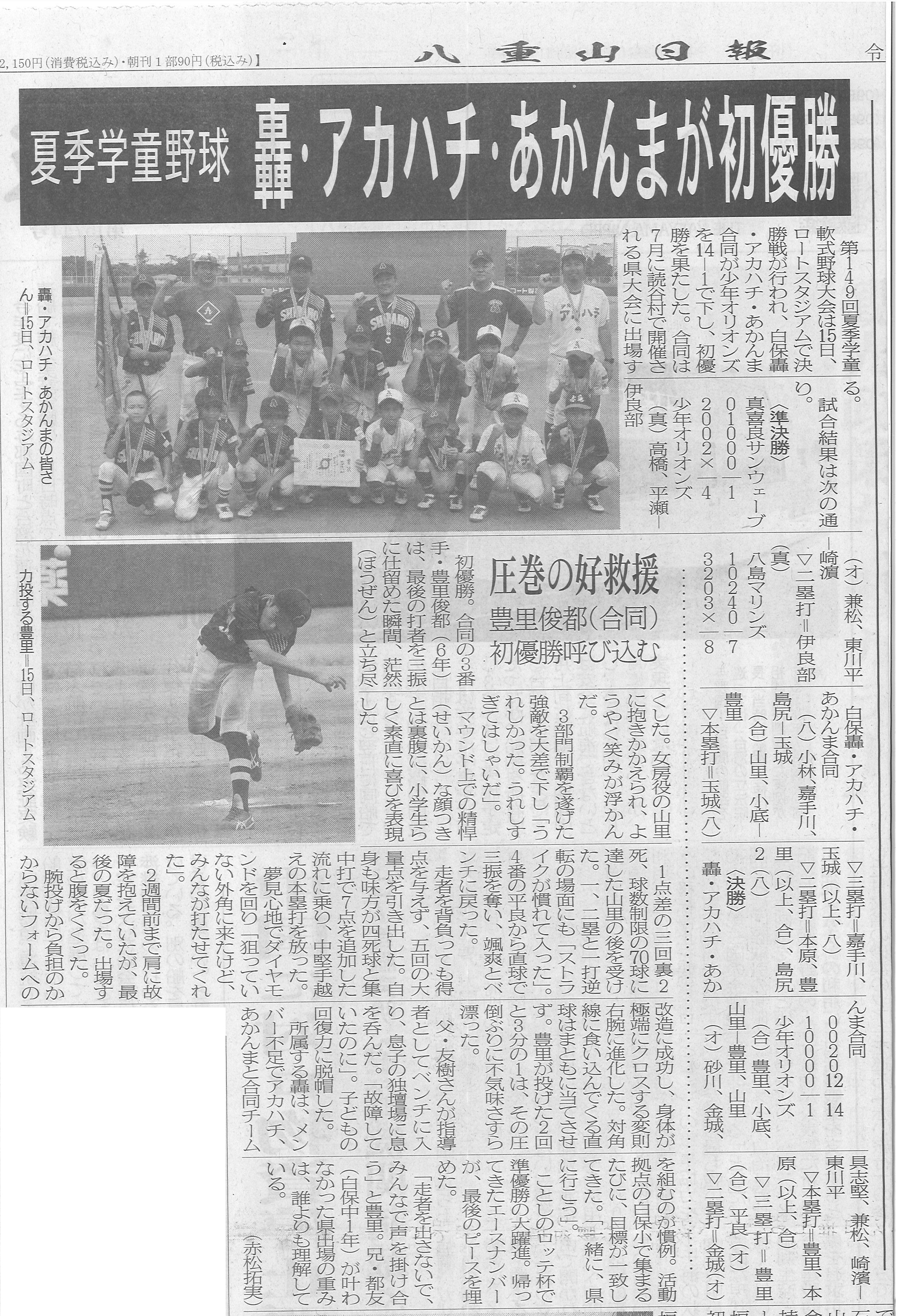 11月22日 八重山毎日新聞 チャレンジカップ優勝.jpg