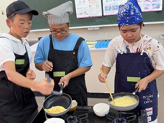 オムレツを初めて作ったという6年生でしたが、コツを教えてもらい手慣れてくると、見事
