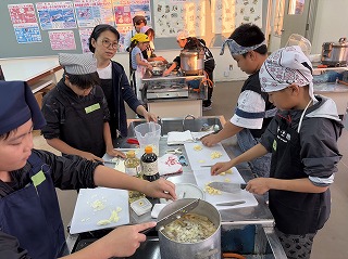 前回に続き6:45~調理に参加した5・6年生は、2回目とあって手慣れた様子で手際よく食材を準備し、