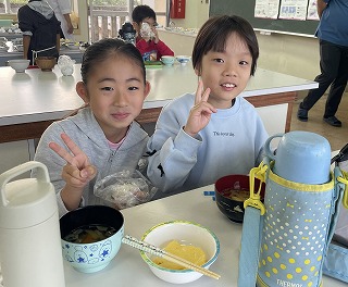 5・6年生も自分で作った上出来の朝ご飯を食べながら満足気な様子が見られました。