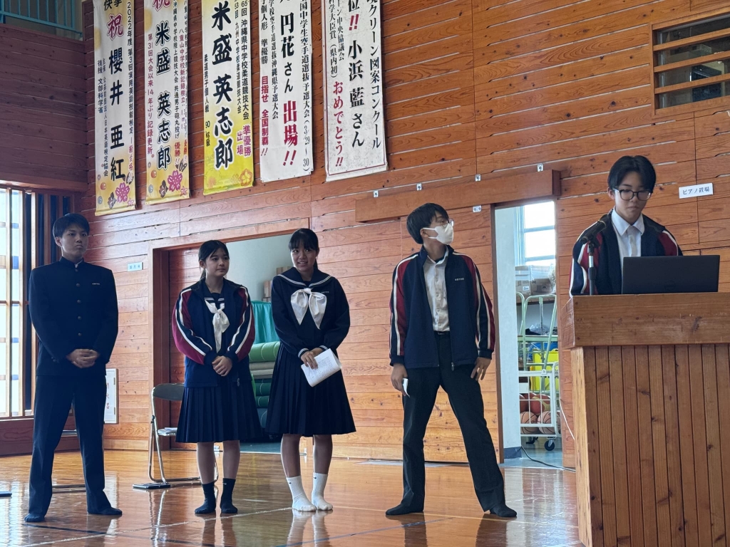 白保中学校の一員として誇りを持って学校生活を過ごしていきたいと