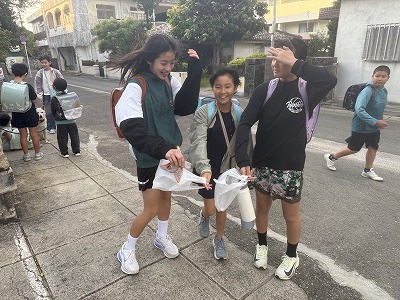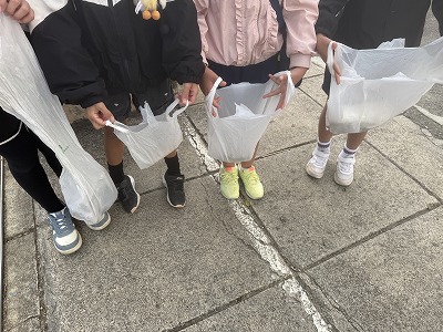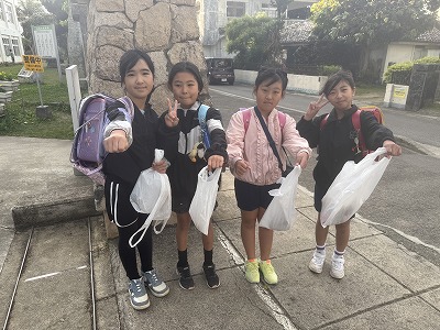 上の先輩たちの姿を見て、下級生の児童たちもゴミ拾いをしながら登校してくました♪ ホントにありがとう~(^^)/