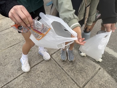 「今日はあまりゴミはなかったです♪」と言いながらも、上の先輩方を見習い、ゴミ拾いをしてくれた登小っ子たちです♪