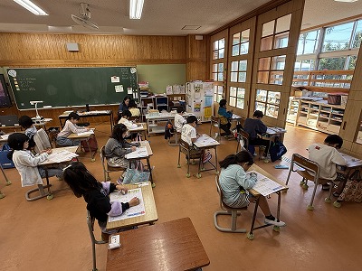 5年3組、 国語の授業です♪ 今日はこれまで学習した「漢字」の書き取りに取り組んでいました(^^)/