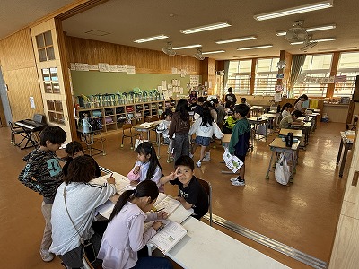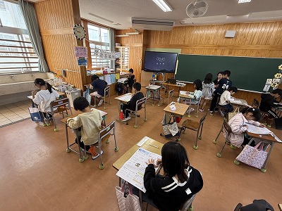 1年3組、国語の授業です。「かきはじめ と かきおわり」について学習に取り組んでいました(^^)/