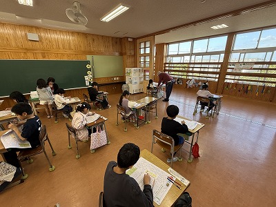 1年1組、国語の授業です♪ 1組さんも学校テストに向けて、プリント学習に取り組んでいました(^^)/