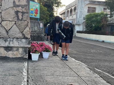 今朝の登校の様子です♪ 今日も登小っ子の皆さんは元気よく登校しました♪