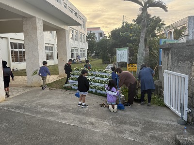 今朝も子どもたちの登校を見守る保護者の皆様です。朝のお忙しい時間帯にありがとうございましたm(__)m