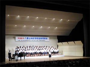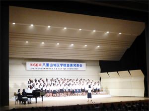 第66回八重山地区音楽発表会(八重山地区音楽教育研究会主催)が7日、市民会館大ホールで行われ、本校からは5年生児童が参加しました。