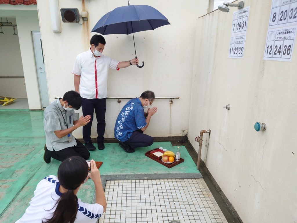 本日、あいにくの雨の中ですが、水泳学習スタートに向け安全祈願を行いました。