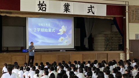 始業式では、代表児童が二学期に向けての抱負を堂々と発表することが出来ました。