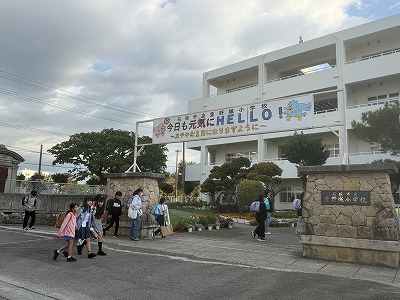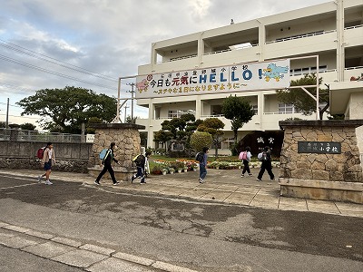 今朝の登校風景です♪ 今日は少し肌寒さをかんじましたが、児童の皆さんは元気よく登校しました♪