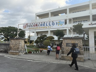 今朝も校門には子どもたちの元気な声が響いています。