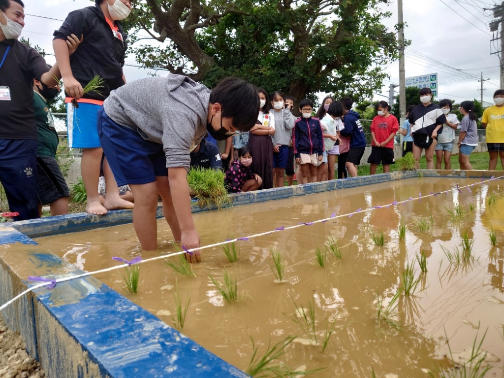 まずは、5年生による稲作体験の様子です。