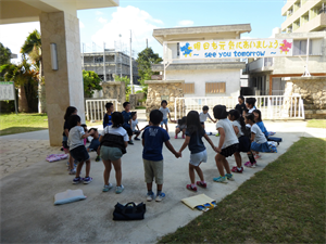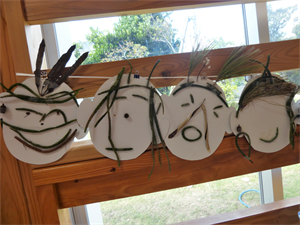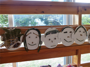 教室には、「秋さがし」で見つけた木の実を使った楽しいお面が掲示されています。石垣島にも秋の気配です・・・。