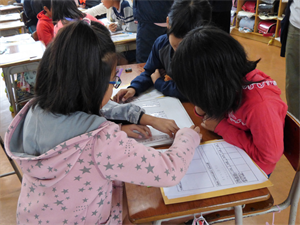 3年生の教室では、「エイズについて考える」を題材に、エイズについて正しく理解すること、エイズ患者や身近な人たちの思いを理解し、差別や偏見を持たずに接することをねらいに授業が展開されました。また、4年生の教室では、「いじめについて考える」を題材に、いじめがどのようなもので、なぜいじめが起こるのか、いじめのない楽しい学級にするための方法について考えました。学校は、人と人とが関わり合う一つの社会です。共生社会に向けて、よりよい人間関係づくりに取り組んでいきます。