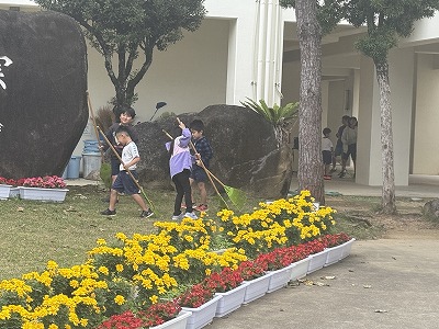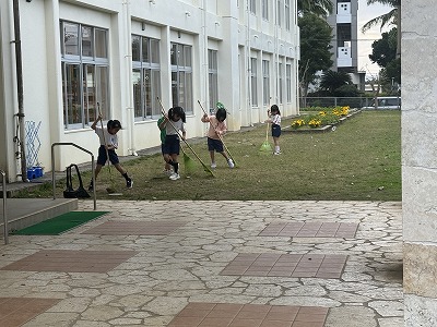 朝のエージェンシータイムで清掃活動を行う児童&職員の皆さんです♪ 今学期最後の日も学校内外をキレイにしてくれて本当にありがとうございました(^^)/