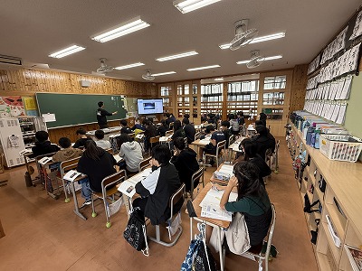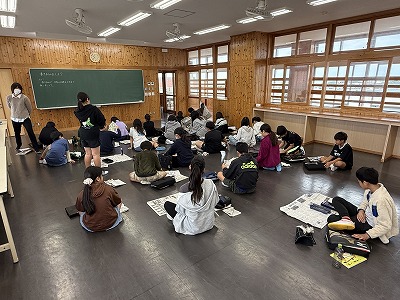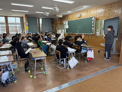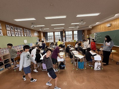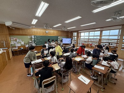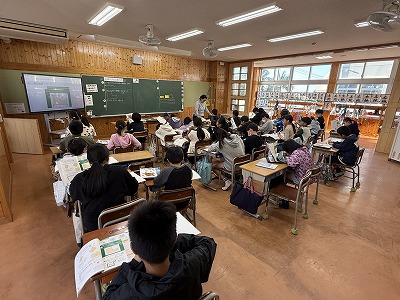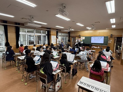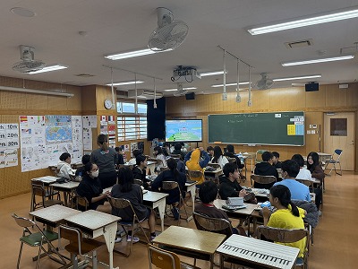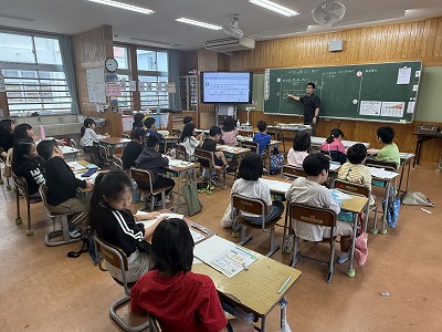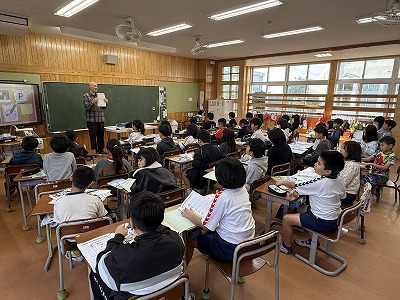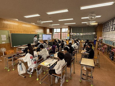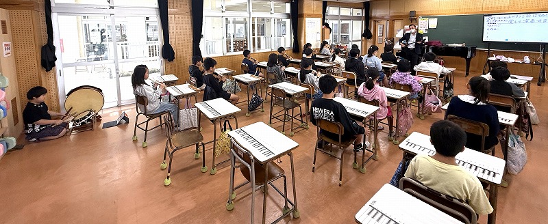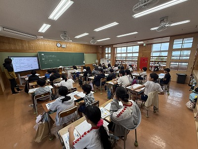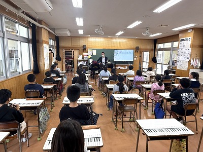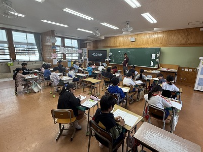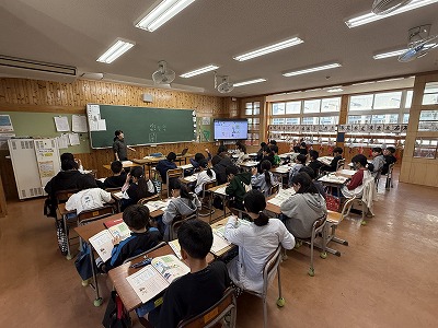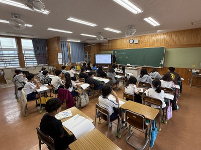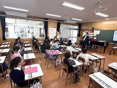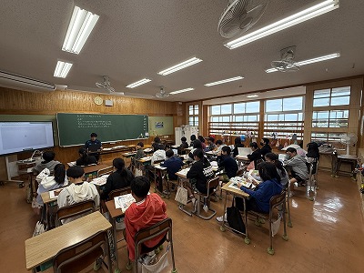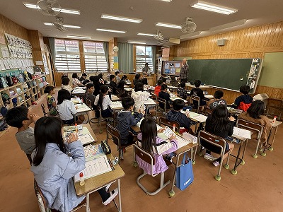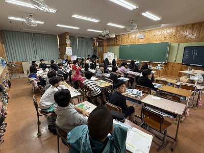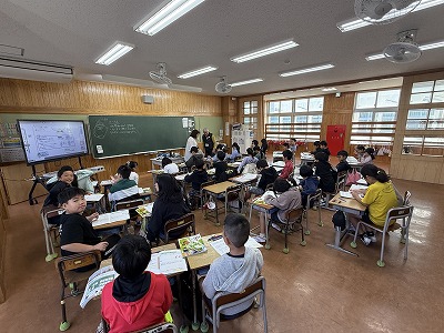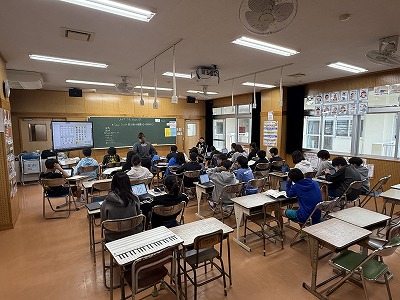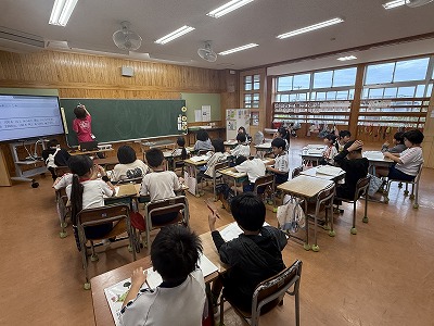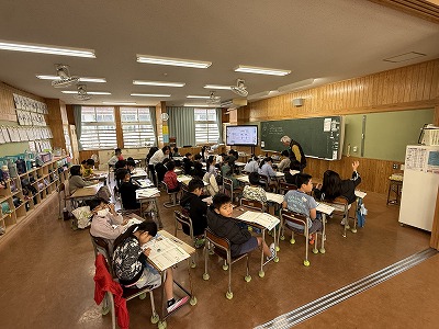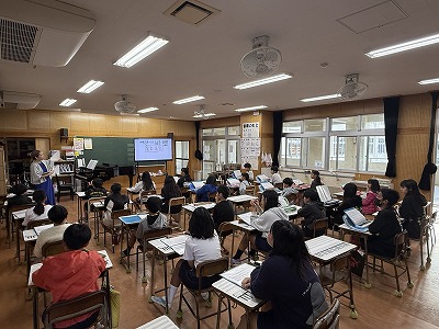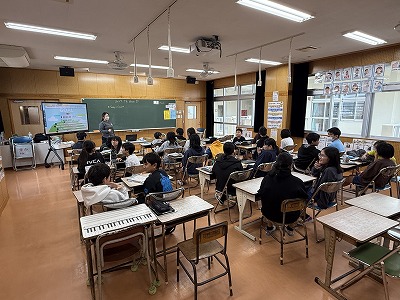 さて、こちらは4年1組、音楽の授業です♪ 今日は地域在住の比屋根様を講師としてお招きし、伝統民謡の学習に取り組んでいました(^^)/