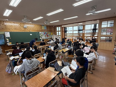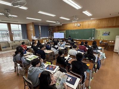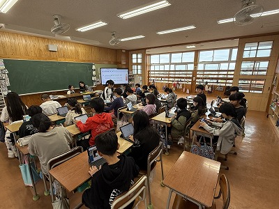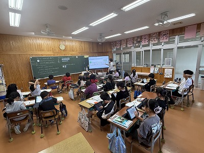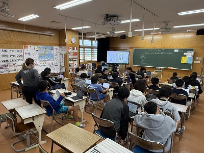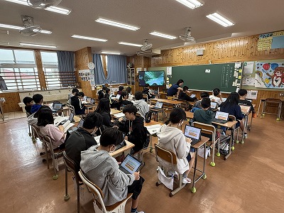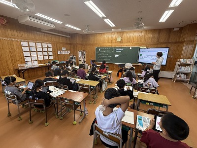 5年2組、音楽の授業です♪ 石垣島出身の作曲家、宮良長包さんについて学習に取り組んでいました(^^)/