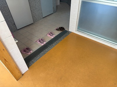 さて、こちらは5年生が使用しているトイレです♪ 5年生のトイレもスリッパがキレイに並べられています♪