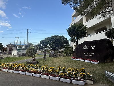 教務主任の金城先生の進行のもと、先ずはみんなで校歌を声高らかに歌いました♪