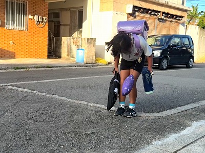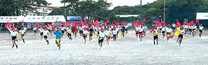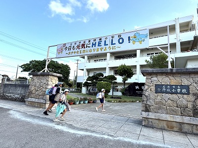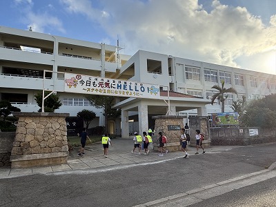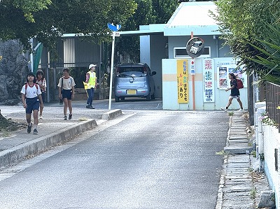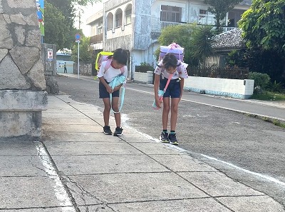 今朝の登校風景です♪ 今日も太陽の強い光を浴びながら、児童の皆さんは元気よく登校しました♪